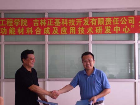 吉林正基科技开发有限公司董事长夏钢与张龙教授进行签约