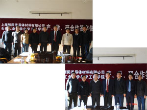 与上海新阳半导体材料有限公司产学研合作签字仪式于2007年12月3日上午10点30分在教学主楼438会议室隆重举行。校长张德江教授、副校长张会轩教授、研究生处处长赵海平教授、科研处处长郭晓立教授、学生处处长李雁冰同志、上海新阳半导体材料有限公司的王福祥董事长、孙江燕总经理、化工学院党政班子全体成员、贺岩峰教授等出席了签字仪式。