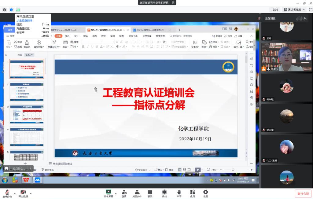 在腾讯会议线上平台举行工程教育专业认证培训,教学院长李贞玉以“指标点分解”为专题做了报告。