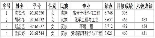 2020年化工学院优秀应届本科毕业生免试攻读硕士学位研究生—公示名单.xls