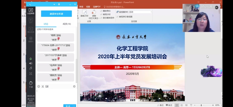 2020年上半年党员发展培训会通过线上课堂开讲,培训会由学院专职组织员肖芳主讲,九色视频