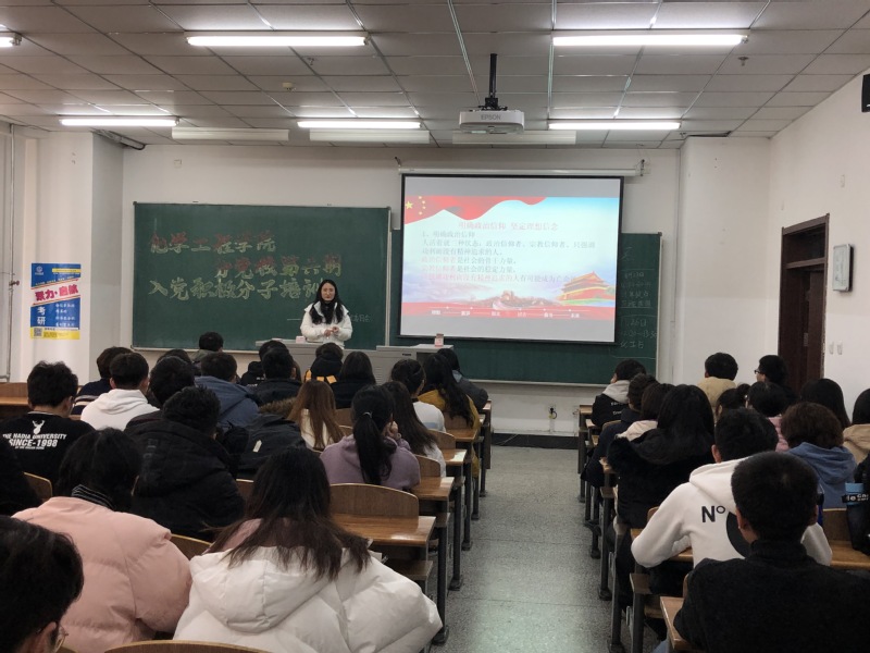 分党校第六期入党积极分子培训。此次培训由学生第一党支部书记、2019级辅导员李秀绒主持,2018级入党积极分子参加了本次积极分子培训。