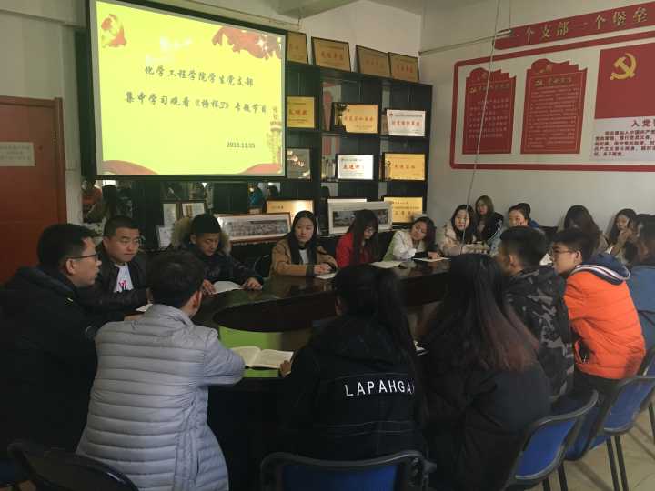学生第一党支部在化工楼四楼会议室组织全体党员观看了《榜样3》专题节目。