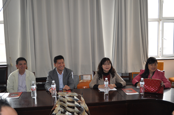 院长张龙教授致欢迎辞,对重庆理工大学化学化工学院一行到院考察工作表示热烈欢迎。张院长表示,重庆理工大化学和化工学院的建设发展有着共同之处,两院应该全面开展工作交流,互通有无,共同进步。张院长还就学院的发展沿革、学科建设、师资建设、发展现状、办学特色和本科生培养情况等方面进行了介绍。重庆理工大学李军副院长表达了到院考察工作的感受和印象,并对自身的办学发展等各项情况做了介绍。