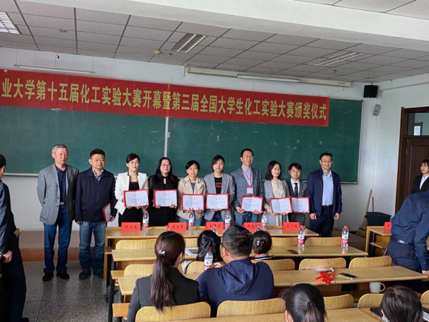 第15届化工实验大赛开幕暨第三届全国大学生化工实验大赛颁奖仪式在南湖校区教学科研楼正式拉开帷幕。教务处刘克平处长、学生工作处周文军处长、校团委仲崇利书记、化工学院杨文龙书记、吴广峰院长、曹永利副书记、谭志勇副院长、李贞玉副院长、王鹏副院长,化工系、高分子系、制药系和环境系教师以及18级化工专业全体同学参加本次活动。