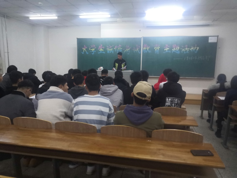 新闻网讯(通讯员孙世祥 张艳海)期末考试将至,为了营造和谐健康的考试氛围,净化期末考试环境,培养学生重视学习、重视考试的观念,根据学校《关于开展大学生诚信考试教育系列活动的通知》要求,学院于近日集中开展诚信考试教育活动。