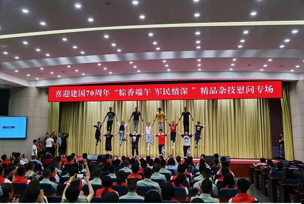 体验活动中,志愿者们首先在武警战士的带领下参观了军营,与在场的武警官兵进行了交流互动,感受军营生活。随后与武警战士共同观看了吉林省杂技家协会、长春演艺集团杂技团有限公司带来的杂技表演。最后,志愿者们和官兵来到军营食堂共同包粽子。大家拿起粽叶,将糯米和大枣放入,包好后用棉绳捆绑。小小的粽子中包裹着人民群众对军人深深地爱戴和支持。大家也将包好的部分粽子送到失独、孤寡贫苦群众家庭中,给予他们关怀。
