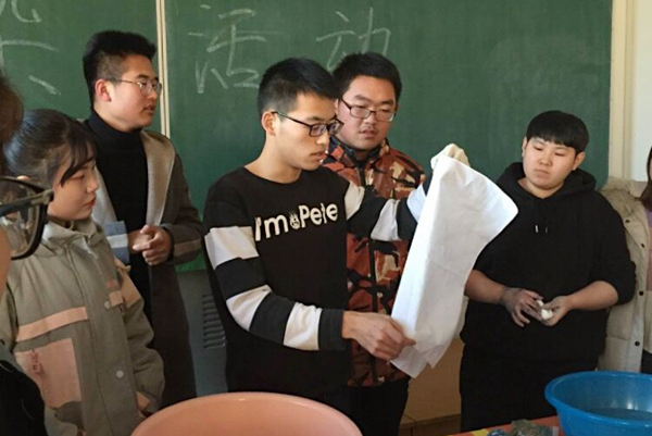 绿荫环保志愿者协会12月8日下午在北湖校区1516教室开展绿色印染环保活动。