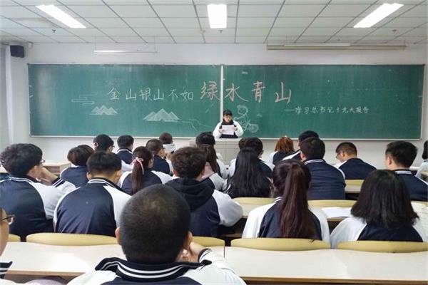 活动中,大家首先共同学习了习近平总书记十九大报告中关于过去五年生态文明建设情况、人与自然和谐共生、加快生态文明体制改革等相关内容。随后,同学们踊跃交流发言,学生代表王芳婷、赵苾艺分享了自己观看党的十九大开幕会上习总书记报告学习的心得体会。
