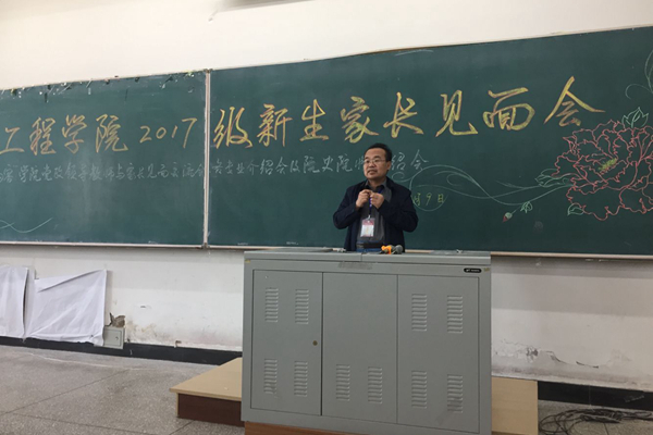 新生入学报到的日子,为了更好的让学生家长了解院史院情,对子女即将到来的大学生活更加放心,学院迎新当天在北湖校区西阶101教室举行新生家长见面会。学院党委书记刘喜明、院长张龙、副书记曹永利、副院长杜长海、谭志勇及各系主任、书记、全体辅导员和部分新生家长参加了见面会。见面会由学生党支部书记、2017级辅导员董广通老师主持。