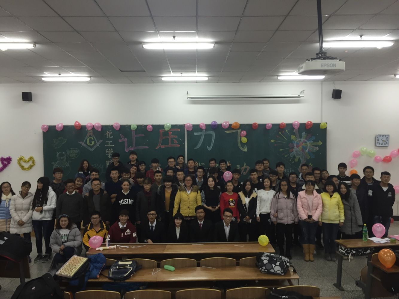 社团联合会心理协会于11月6日14点在北湖校区东阶204教室举行了“让压力飞”心理游戏活动。化工学院社团联合会副主席张天意、房新颖出席了本次活动。