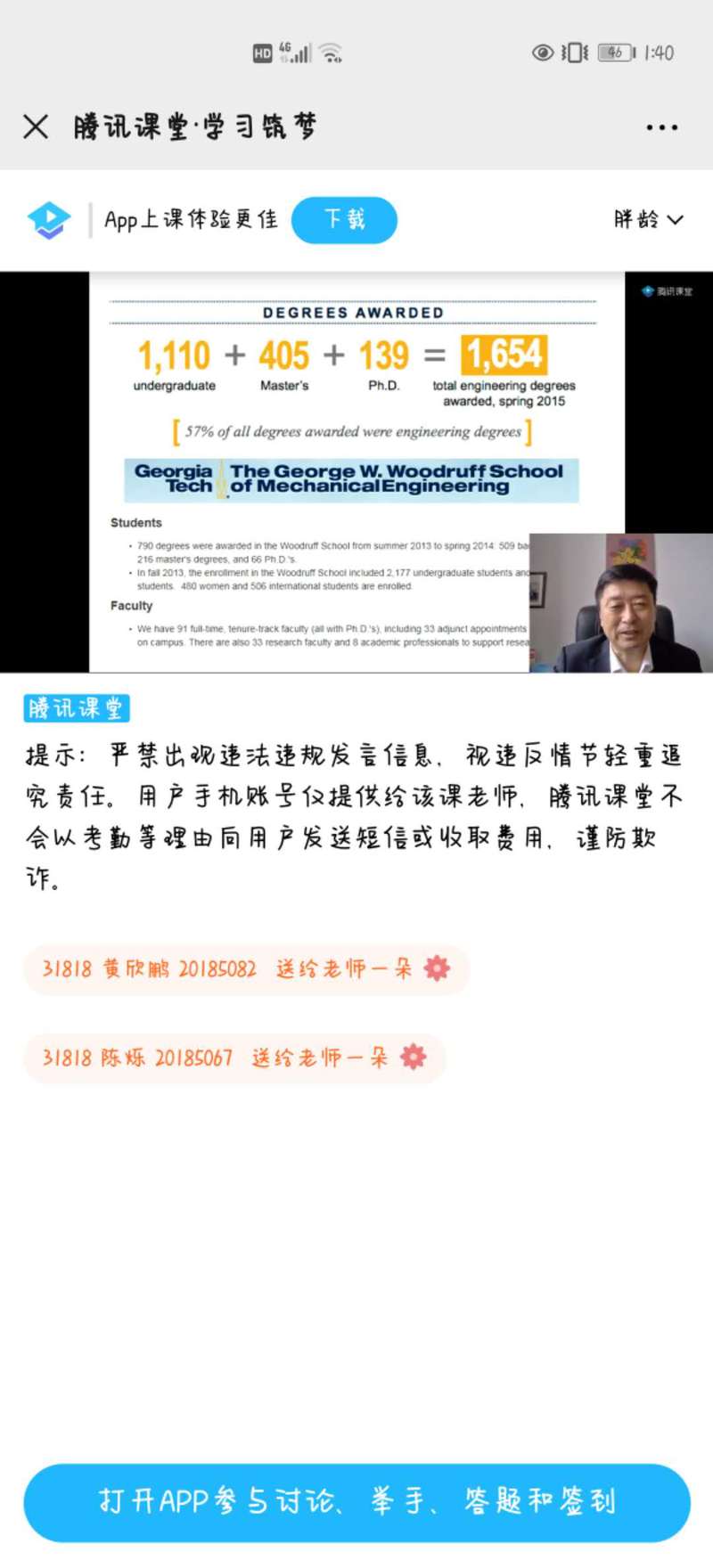 校长张会轩利用腾讯课堂平台为应用技术学院2018级机电一体化技术、数控技术专业共195名学生讲授了一次意义重大的学习筑梦课。