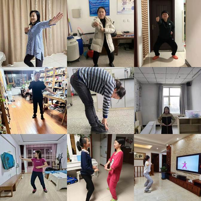女教职工积极响应活动号召,伴随着优美的音乐,一招一式,动作舒展,动静相兼,刚柔并济,意动形随,共同演绎了八段锦的自然与和谐之美,展现出教职工积极进取、健康向上的精神风貌,在家庭、学校掀起了一股学习练习八段锦的热潮。