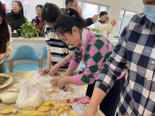 各代表队的成员们分工明确、配合默契,一只只造型精美的饺子在他们的手中诞生。不一会,一盘盘大小匀称、紧实饱满、形状美观的饺子整齐地摆上台面。尽管窗外寒意袭人,但食堂内却热闹非凡、欢声笑语不断,给这个冬天带来了阵阵暖意。