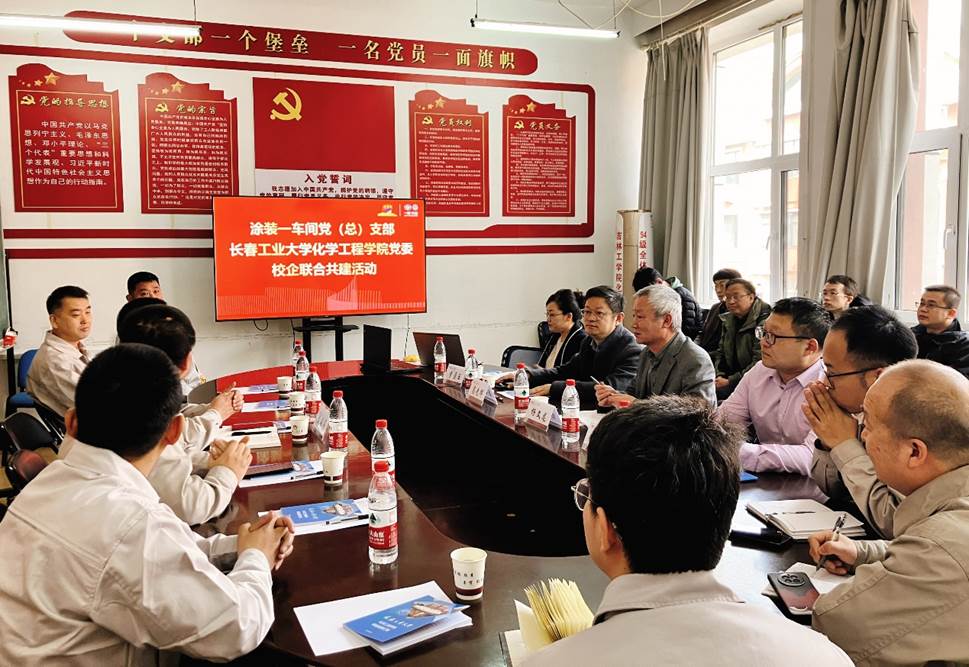 党委与一汽-大众汽车有限公司长春生产党委涂装一车间党总支部举行党委共建活动。学院党委书记杨文龙、院长高光辉、副院长李贞玉、杨旭东及部分教师,一汽-大众涂装一车间党总支部李海军书记等10人参加共建活动。