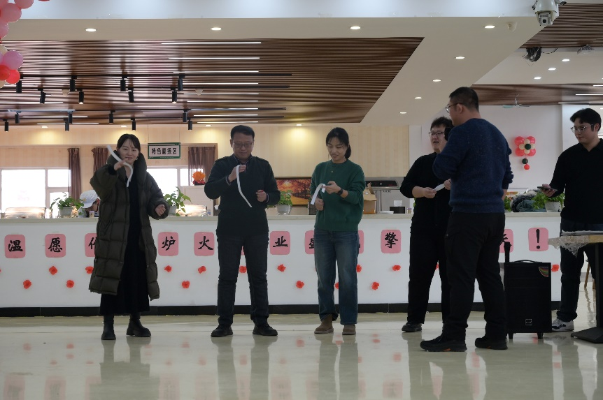 随后,晚会以“搓纸条”游戏拉开了游戏环节的序幕。紧接着,“纵横天下”、“十指同心”等轻松有趣的小游戏轮番上演,不仅舒缓了教职工在过去一年里紧张的工作情绪,更为大家提供了相互交流和增进友谊的宝贵机会。