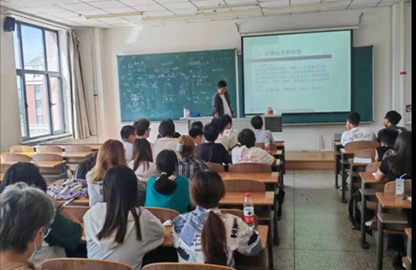 在《生物化学》课上,刘湧涛老师细致介绍“生物化学”作为第五大化学,学习的目的、涉及的内容,以及对未来制药专业课程学习的基础性作用。课堂上运用多媒体课件,图文并茂,生动形象地融入到学习中去。